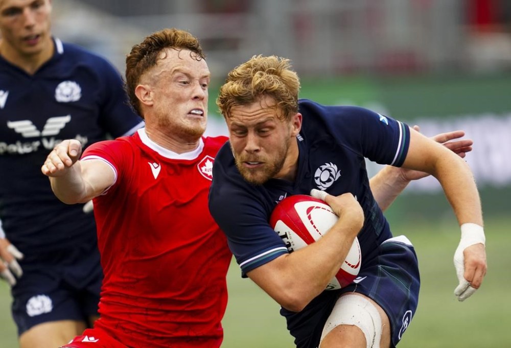 Canada led Scotland 5-0 early but trailed 24-5 at the break. Scotland, which left several of its top players at home, then won the second half by a 49-7 margin, finishing with 11 tries.