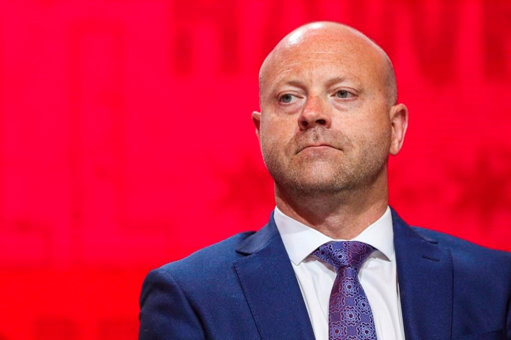 Chicago Blackhawks senior vice president and general manager Stan Bowman attends the NHL hockey team's convention in Chicago on July 26, 2019. The Edmonton Oilers have hired Bowman as the team's general manager and vice president of hockey operations. THE CANADIAN PRESS/AP/Amr Alfiky