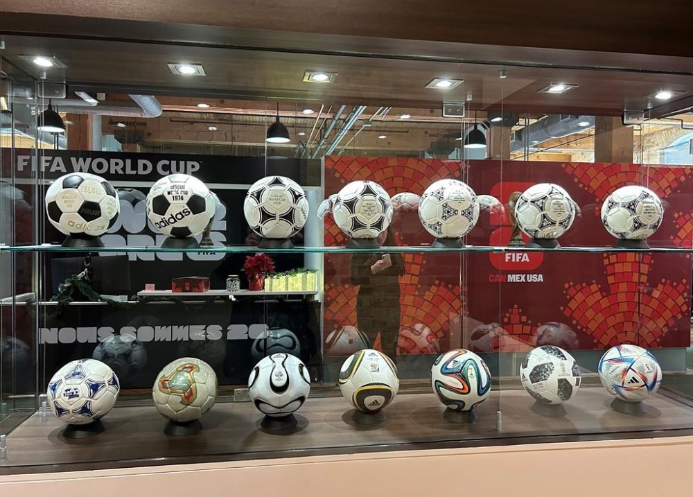 The entrance features a display of 14 official match balls dating back to the 1970 World Cup. A giant 2026 cut-out in the shape of the FIFA World Cup trophy provides a unique photo op. Maple Leaf motifs decorate the converted factory, which is getting busier by the day.