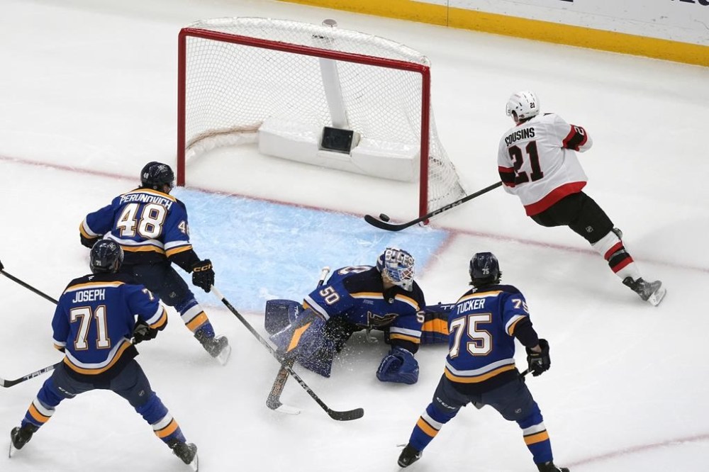 Thomas Chabot appeared to score for Ottawa with 34 seconds remaining in the second period, but St. Louis challenged the play, and the officials ruled that Nick Cousins had entered the zone offside. Cousins earlier had a chance to tap the puck into a wide-open net with 4:46 remaining in the first period, but he just lost control of the puck in the crease enough for it to sail wide of the goal.