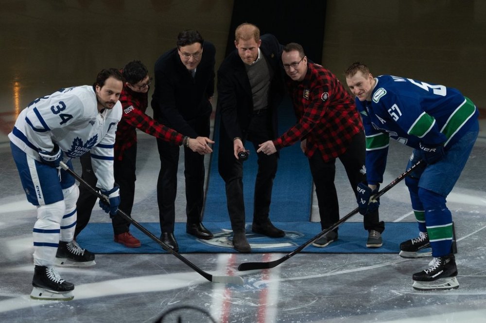 VANCOUVER – Prince Harry dropped the puck during a ceremonial opening faceoff before the Vancouver Canucks hosted the Toronto Maple Leafs on Saturday.
