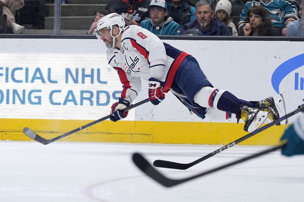 SAN JOSE, Calif. (AP) — Alex Ovechkin shook off a rough start to this three-game California swing by scoring his 887th career goal Saturday against the San Jose Sharks to move within eight of breaking Wayne Gretzky’s NHL record.