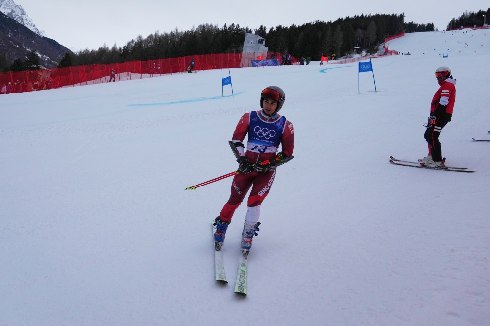 To the point where he competed at world championships in Austria last winter and now in Bormio. He joins short track speedskater Cheyenne Goh as athletes representing Singapore who’ve competed at a Winter Games. Goh was 28th in the women’s 1,500 at the 2018 Pyeongchang Games.