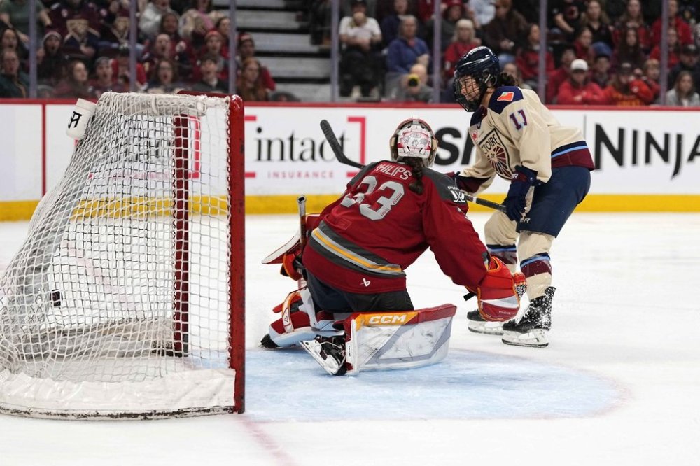 Peyton Hemp had back-to-back chances and came up short. And less than a minute later Montreal broke in on a two-on-one that ended with Willoughby beating Philips high blocker side for her first of the season. Abstreiter picked up an assist on the play.