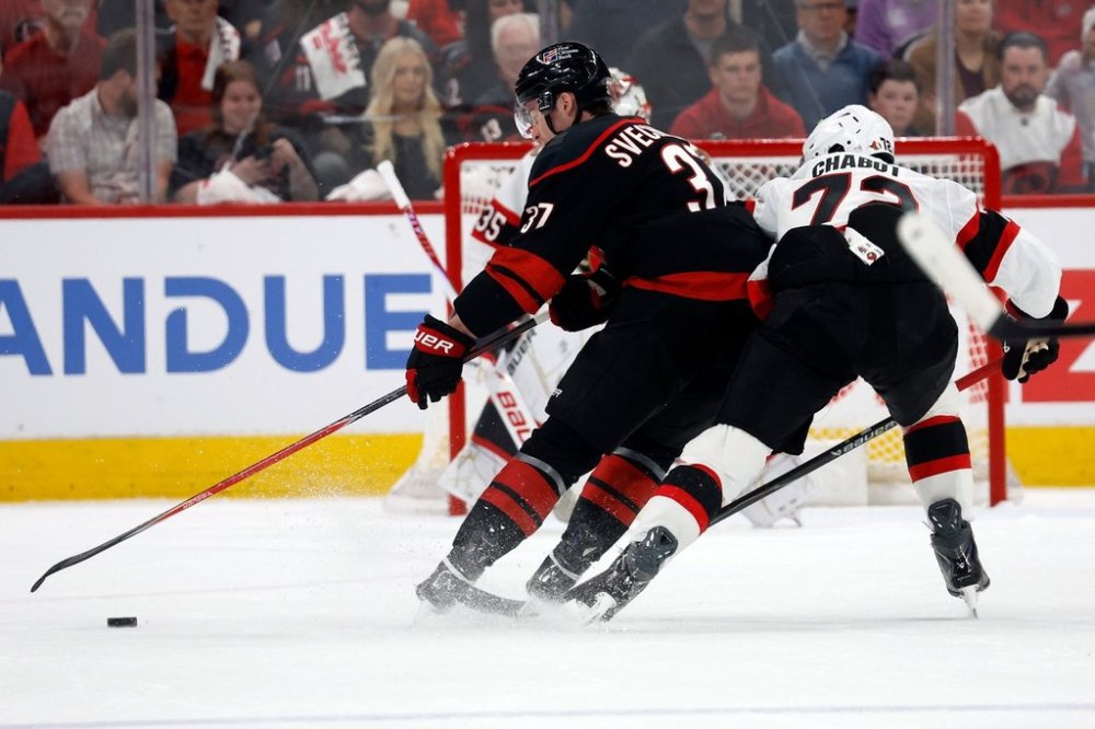 “You play in Carolina, that’s what they do,” Chabot said Sunday. “Probably until the first TV timeout, they try to create some momentum in hitting and throwing every puck at the net. We knew that was coming.”