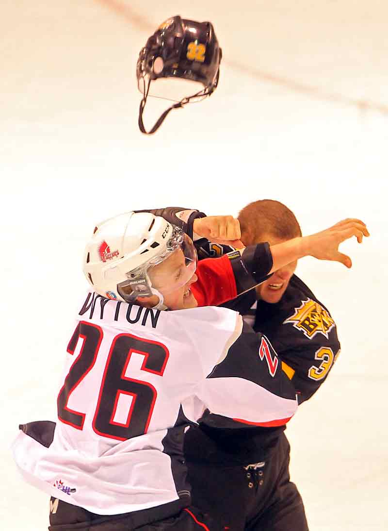Based on hockeyfights.com statistics, that first-period dust-up with Swift Current Broncos heavyweight Daniel Dale was the 54th fight of Miller’s career. In an age when many wonder if fighting has any place in the game anymore, Miller is an unapologetic proponent of ‘old-time hockey.’