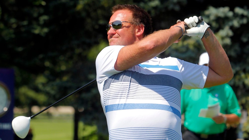 Trevor Kidd tees off during the Players' Cup golf tournament at Winnipeg's Pine Ridge course in 2015.