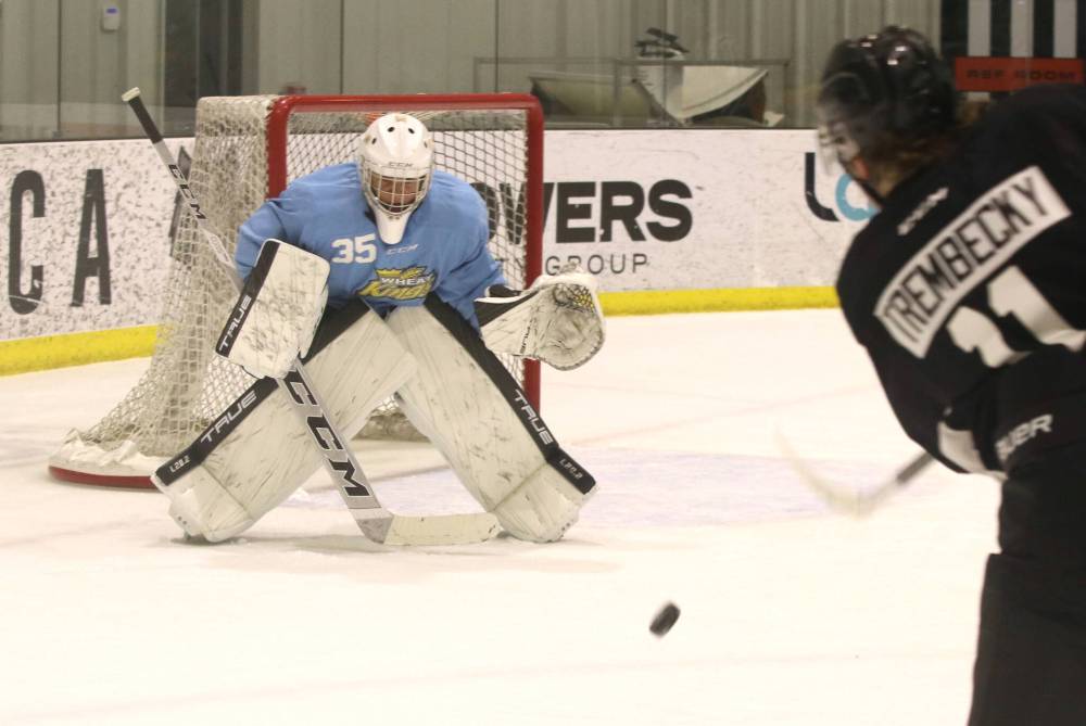At prospects camp, where he and 16-year-old prospect Ethan Eskit were the only netminders, Green acquitted himself well. He was facing more talented players than he was accustomed to, some of whom were two years older.