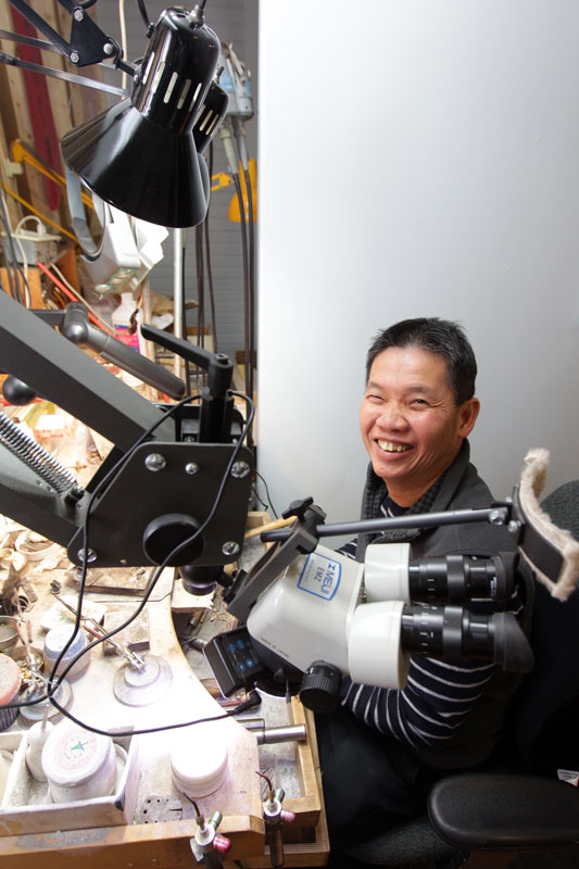 Yes. And I think I know a lot more things than most other goldsmiths. For example, sizing and making rings and setting stones those are totally different jobs. Setting stones is supposed to be one person’s job. But I still can do that job. And custom-making and repair and setting — everything takes a long time to practice it. You may know it already, but you still need time to practice. That’s why it takes a long time to train one person.