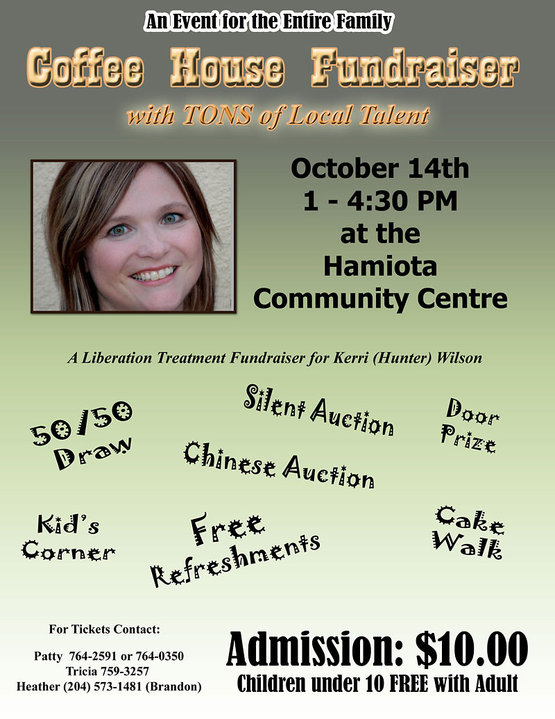 For those who can’t make it out to Hamiota for the benefit, there are accounts set up for the Kerri (Hunter) Wilson Liberation Fund at Vanguard Credit Union and Royal Bank of Canada here in Brandon.