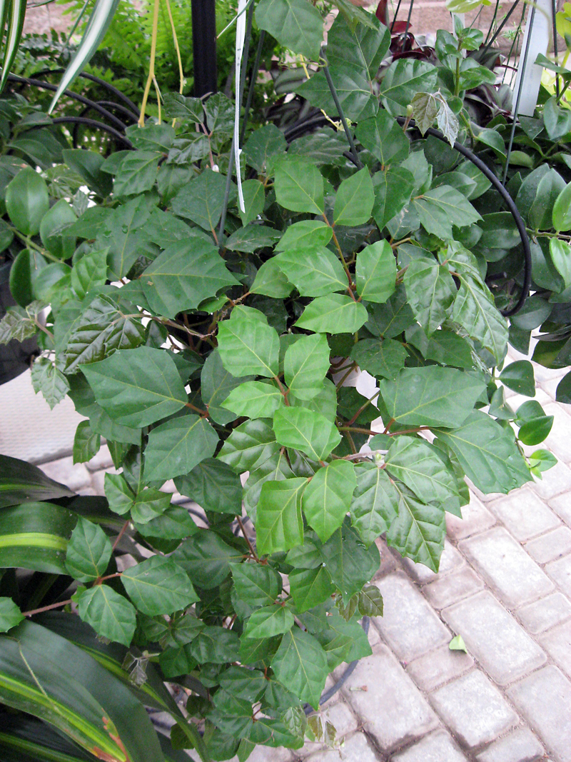 I have mine displayed on top of a tall china cabinet where the foliage tumbles down the side of the cabinet, both softening the upper edge of the cabinet and providing a lovely show of foliage. I have chosen the variety that has oak-shaped leaves although the standard form would be just as attractive.