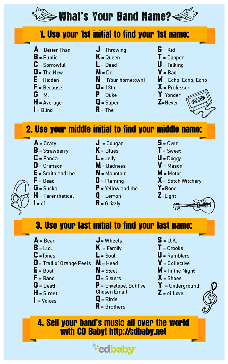 So if you’re thinking of starting a band, remember you’ll need a name. You’re totally welcome to use my democratic method or there is always the “Band Namer.” You’ll find it online.