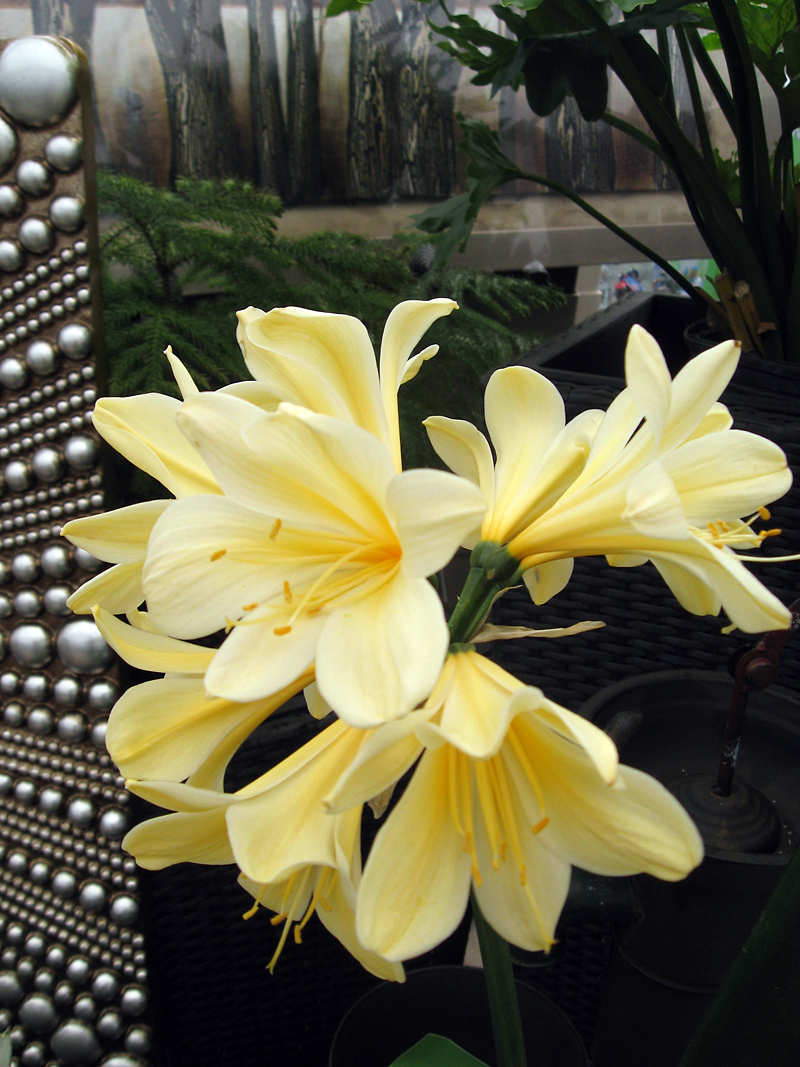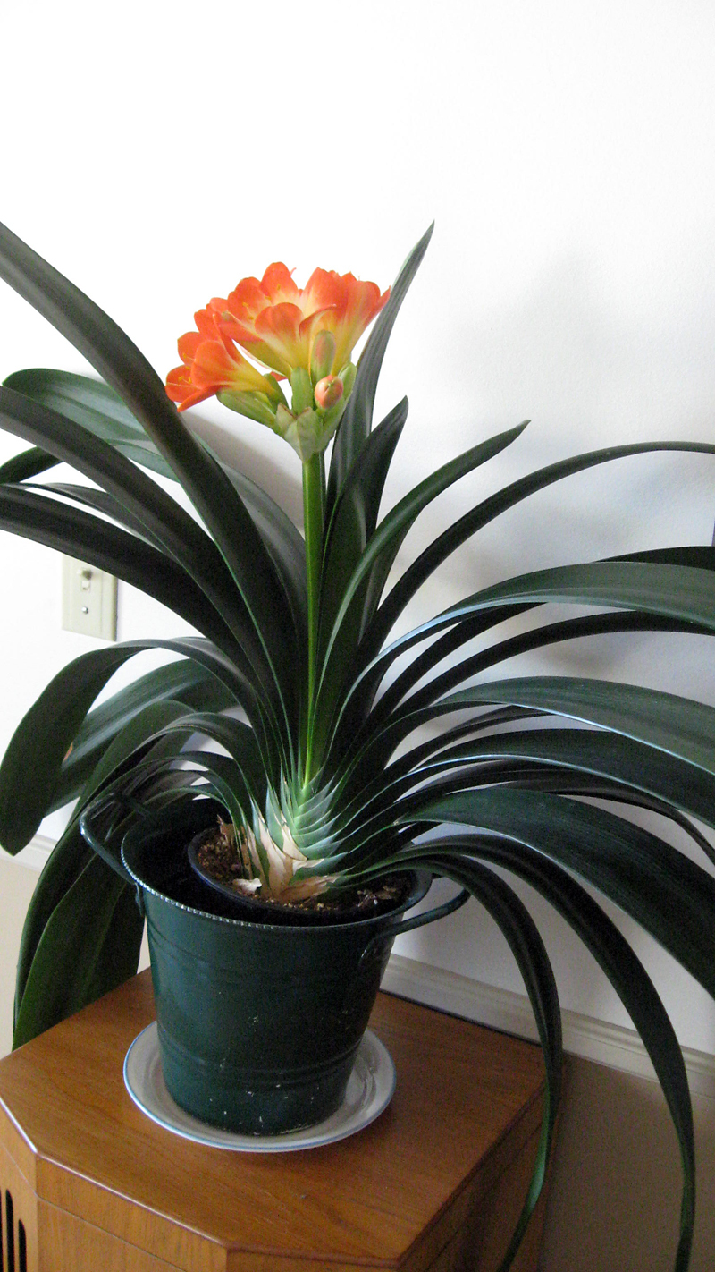 The long, strap-like leaves are pendulous and reach below the bottom of the pot so a clivia is best displayed on a pedestal or plant stand that allows the leaves to cascade freely..