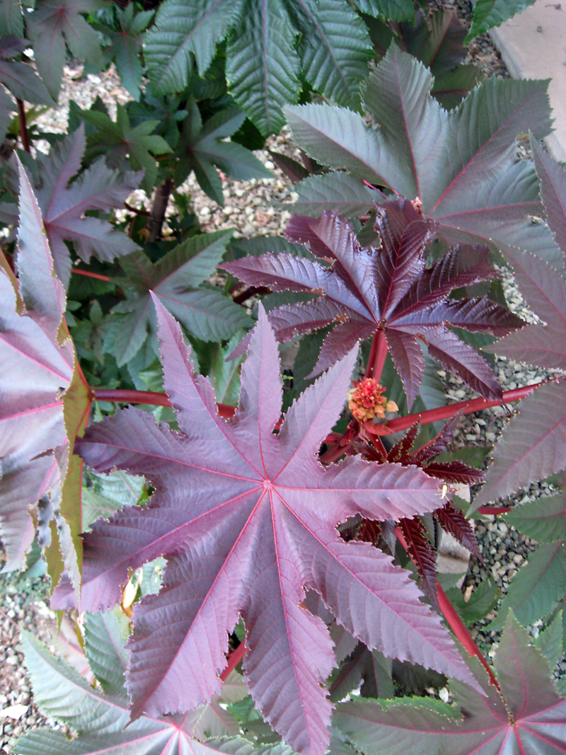 This winter I saw an immense specimen in Mesa, Arizona that was all of five meters tall and was like a tree. In such warm climates, castor beans will live for several years and get quite large.