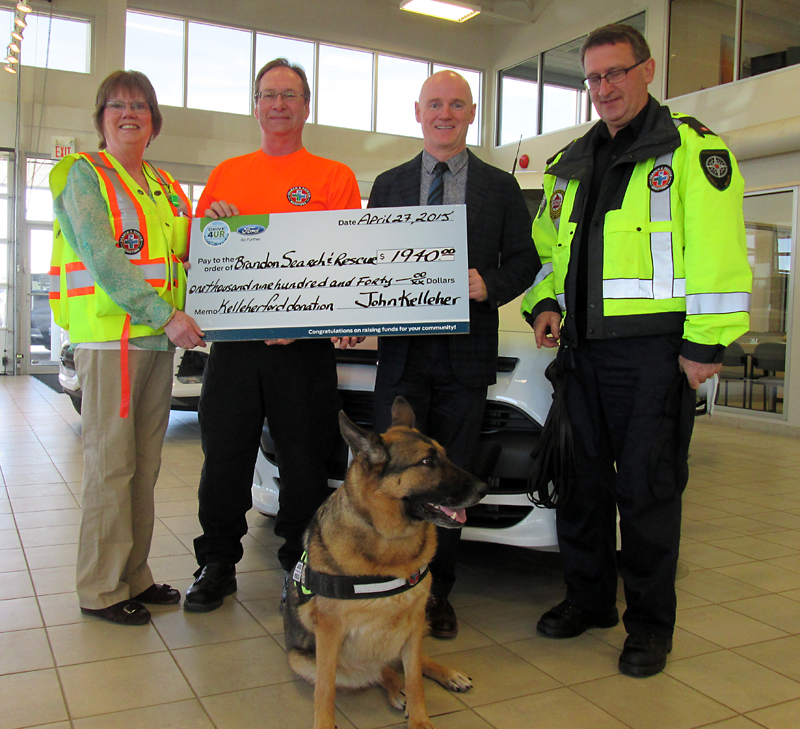 At an event in April, Kelleher Ford Sales and Ford Motor Company of Canada, Limited held their innovative Drive 4 UR Community program and raised $1,940 for Brandon Regional Search and Rescue.
