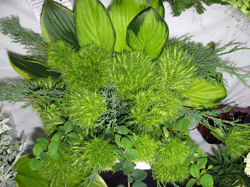 Among the many unique and beautiful entries at the Brandon Garden Club’s show were a few cut flower and flower arrangement exhibits that used unique green dianthus blooms.