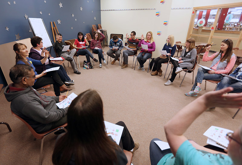 “We can learn the language in a relaxed way,” said Li, who is studying business administration. “We can talk and we can have games and then people can share their experience of how they came to Canada.”