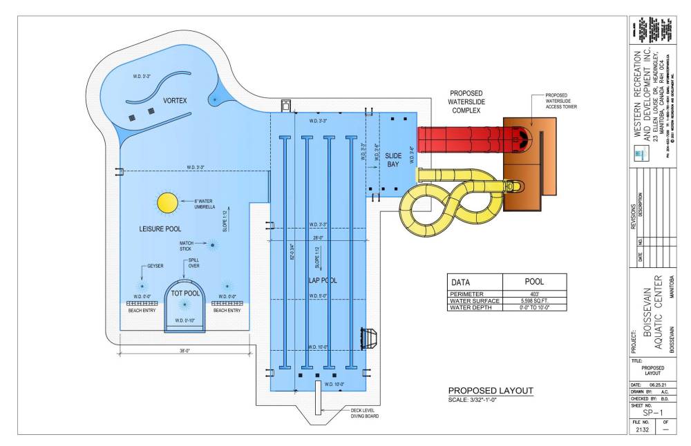 The municipality is still finalizing the details of the new aquatics centre, but is planned to include a pool with a slanted entry, a lazy river, water slides and a pool for lap swimming, she said. Preliminary drawings also show a pool for younger children.