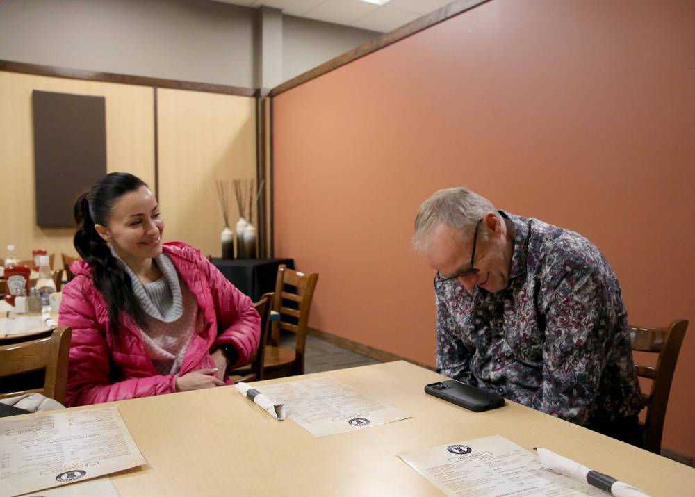 Tetiana Lushtaienko and Rick Pauls share a laugh at his restaurant, the Blarney Stone Pub and Restaurant in Killarney. Pauls has taken numerous Ukrainians displaced by the war with Russia into his home and helped them settle and find work in Canada. Lushtaienko was among the first to stay with Pauls. (Photos by Ian Hitchen/The Brandon Sun)