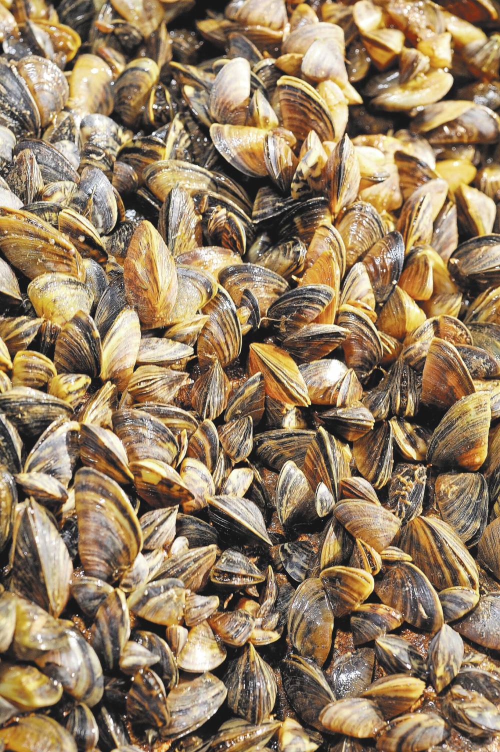A rock is covered with zebra mussels, which originated in Russia and have spread across North America. If Manitoba's government wants to keep lakes open in the face of the threat this invasive species poses, it's going to need to provide more resources such as inspection and decontamination stations. (File)