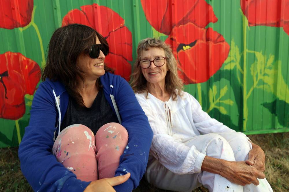 Erica Lowe (left) and her mother Mary Lowe have been painting murals for nearly two decades in the Westman area. They say they work as a good team because they can be honest with each other. (Connor McDowell/The Brandon Sun)