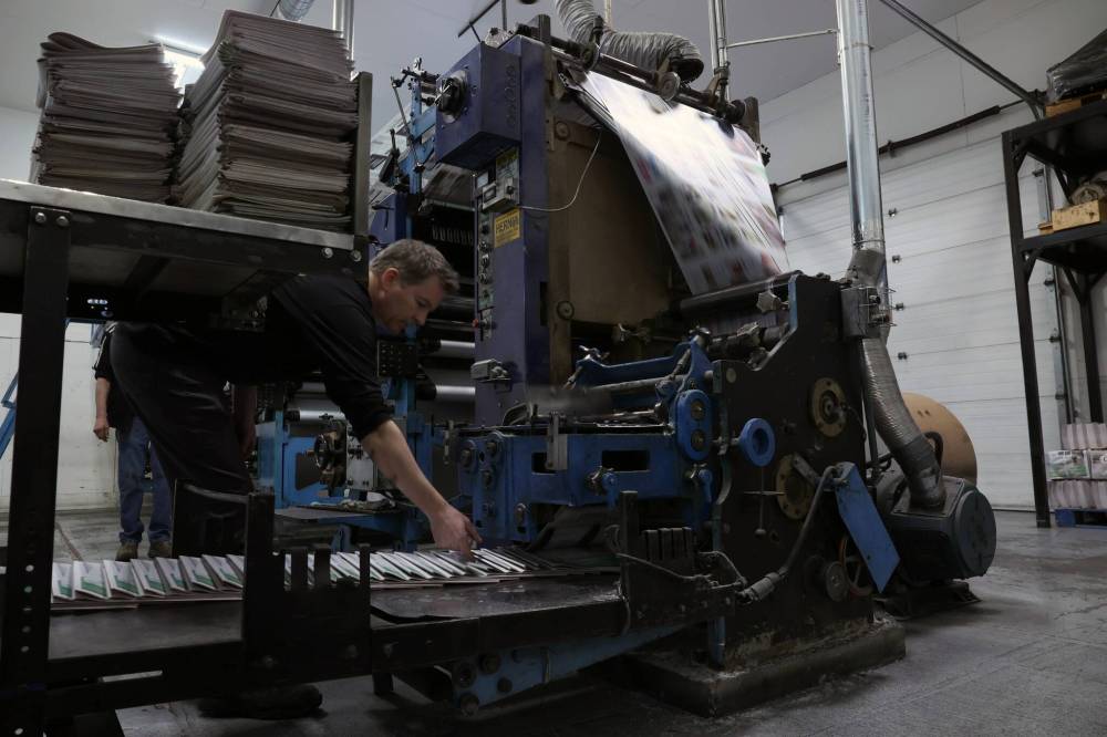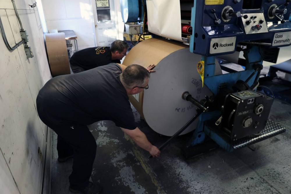 In the next 10 weeks, he says their warehouse with dozens of rolls of 900-pound newspaper will empty. Each will be manually loaded into the press, and they’ll start the cycle again.