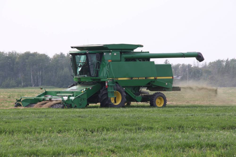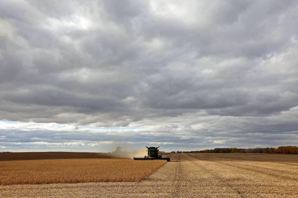 Soybeans are harvested from a field west of Brandon in October 2023. Scientists in Ontario have been testing the benefits of wollastonite on soybean crops there. (Tim Smith/The Brandon Sun files)