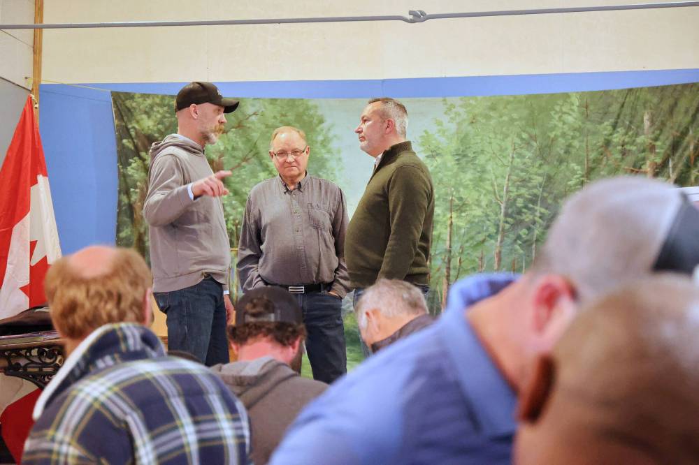 Matthew Atkinson, a Neepawa-area farmer, walked on stage during the open house and called for everybody’s attention, stated that he did not believe one-on-one conversations were accountable to the public, and initiated a group format question-and-answer at the meeting of roughly 80 people.
