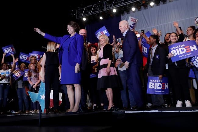 DALLAS – Rivals no more, Amy Klobuchar and Pete Buttigieg united behind Joe Biden’s presidential bid on Monday as the Democratic Party’s moderate wing scrambled to boost the former vice-president just hours before voting began across a series of high-stakes Super Tuesday states.