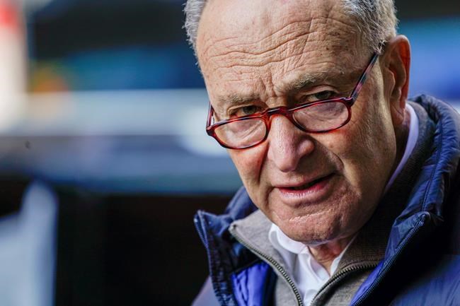 Senate Minority Leader Chuck Schumer, D-N.Y., speaks to reporters during a news conference, Tuesday, Jan. 12, 2021, in New York. (AP Photo/Mary Altaffer)