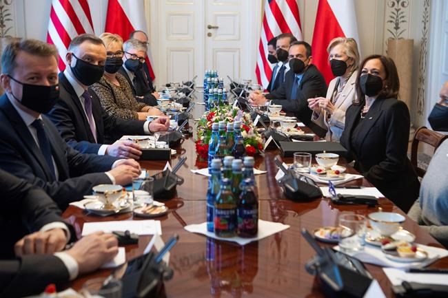 Duda warned of a “refugee disaster” if Poland doesn’t receive more assistance to help house and feed Ukrainians fleeing the conflict. He said he asked Harris for the U.S. to “speed up” the process for those Ukrainian refugees who would want to go to the U.S. and might have family there.