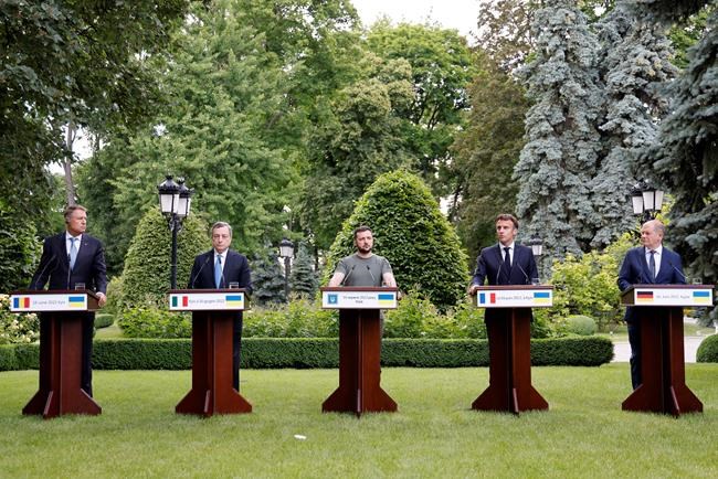 KYIV, Ukraine (AP) — Four European leaders expressed their support for Ukraine on Thursday while meeting with President Volodymyr Zelenskyy, vowing to back Kyiv's candidacy to eventually join the European Union and offering more weapons to fend off Russia's invasion.