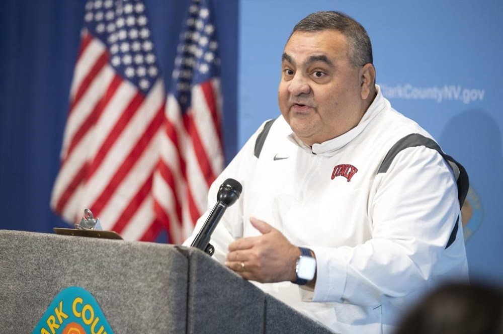 Joe Gloria, the Clark County Registrar of Voters, responds to a question on the Clark County ballot count during a news conference at the Clark County Election Department in North Las Vegas, Saturday, Nov. 12, 2022. Nevada's ballot count is entering its final act and may determine which party controls the U.S. Senate. (Steve Marcus/Las Vegas Sun via AP)