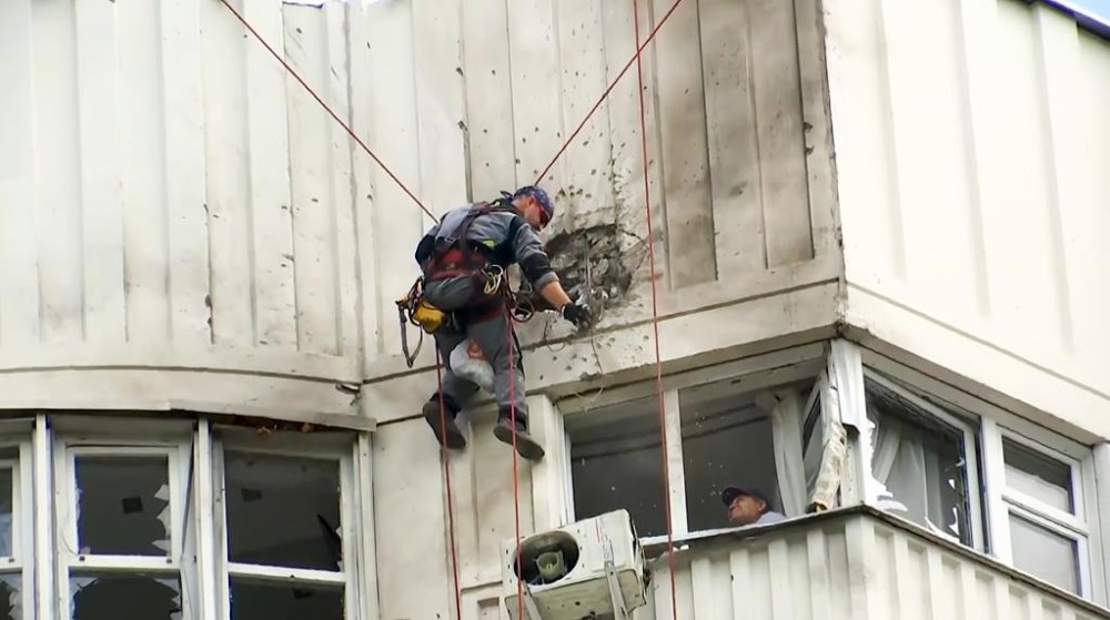 The attack, while causing only what Moscow Mayor Sergei Sobyanin said was “insignificant damage” to several buildings, brought the war home to civilians in Russia’s capital. Two people received treatment for unspecified injuries but did not need hospitalization, Sobyanin said, adding that residents of two high-rise buildings damaged in the attack were evacuated.