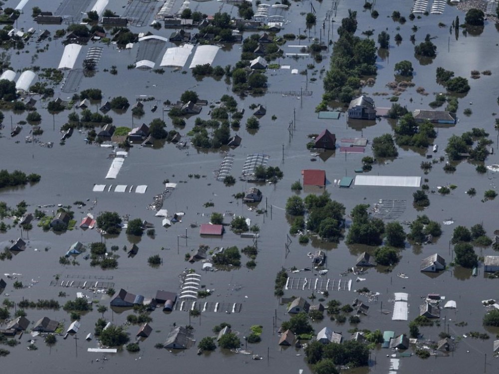The ensuing flooding has ruined crops, displaced land mines, wrought widespread environmental damage and set the stage for long-term electricity shortages. Exclusive drone footage captured by The Associated Press showed the ruined dam falling into the river and hundreds of homes, greenhouses and even a church submerged in the deluge.