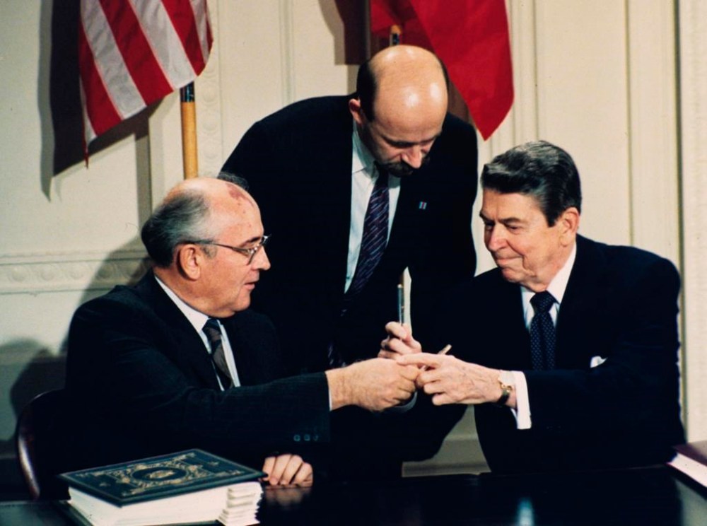 The INF Treaty, which was signed by U.S. President Ronald Reagan and Soviet leader Mikhail Gorbachev, banned the production, testing and deployment of land-based cruise and ballistic missiles with a range of 500 to 5,500 kilometers (310 to 3,410 miles).
