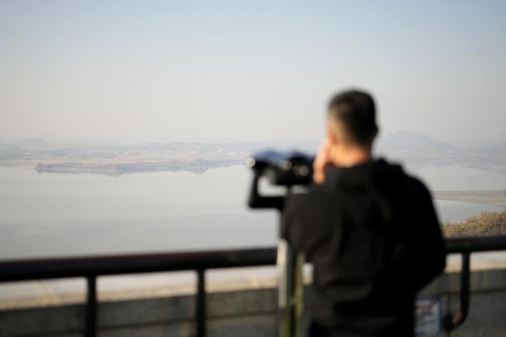 A visitor looks at the northern side from the unification observatory in Paju, South Korea, Tuesday, Nov. 21, 2023. North Korea has launched a rocket in what may be its third attempt to put a spy satellite into orbit, according to South Korea's military. (AP Photo/Lee Jin-man)