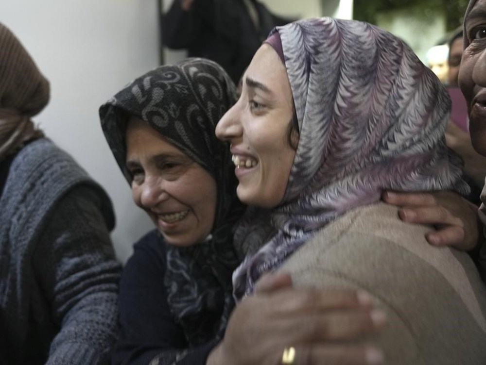 In the West Bank, hundreds of people burst into wild celebrations for a second night as a busload of Palestinian prisoners arrived early Sunday. Teenage boys released in the deal were carried on the shoulders of well-wishers in the main square of the town of Al Bireh. But the mood of celebration was dampened by scenes of destruction and suffering in Gaza.
