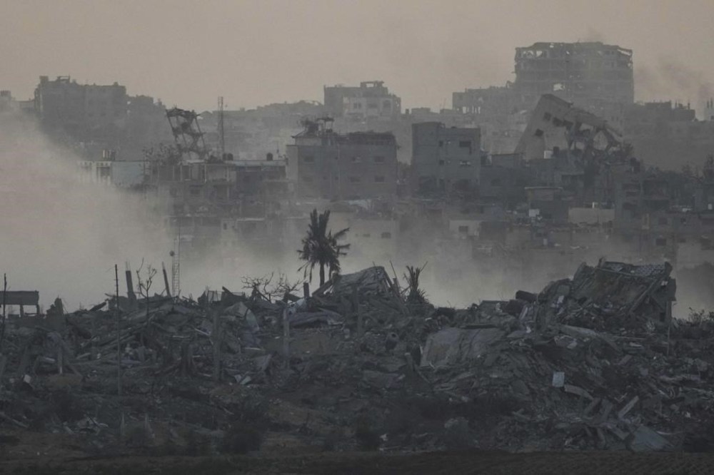 Smoke rises following an Israeli bombardment in the Gaza Strip, as seen from southern Israel, Saturday, Dec. 2, 2023. (AP Photo/Leo Correa)