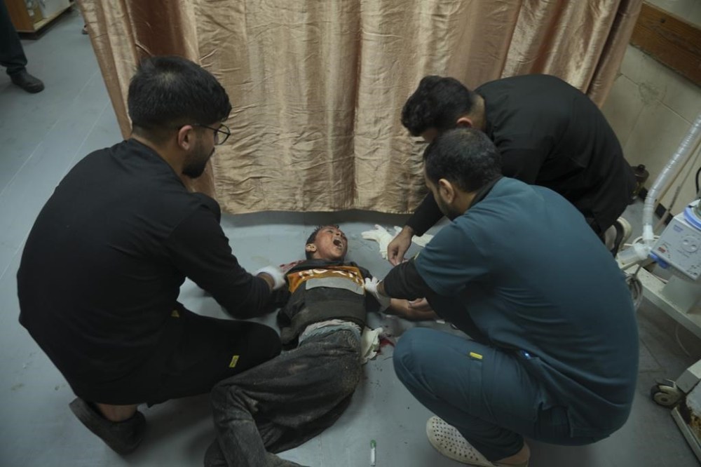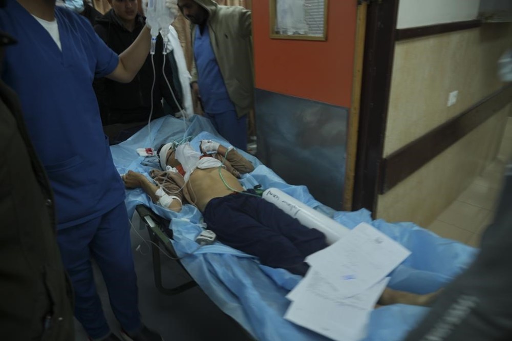 A Palestinian child wounded in Israeli bombardment is treated at the hospital in Deir al Balah, Gaza Strip, on Saturday, Dec. 2, 2023. (AP Photo/ Hatem Moussa)