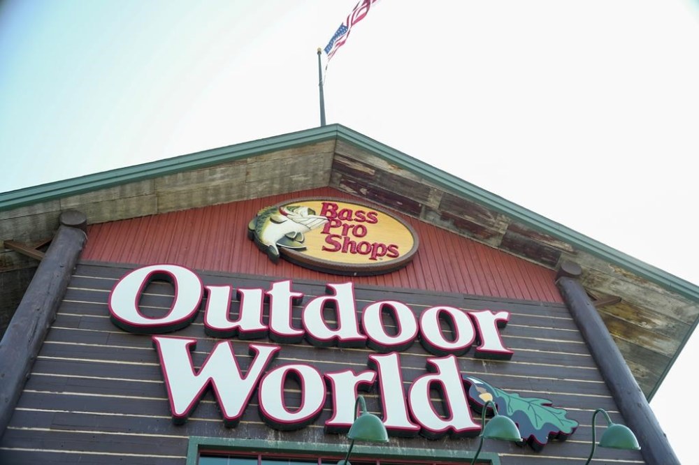 In this Sept. 19, 2017 file photo, the Bass Pro Shops logo is seen at the entrance to a store in Council Bluffs, Iowa. Police in Alabama say a man crashed his car outside a Bass Pro Shop, Thursday night, Jan. 4, 2024, and stripped down to his birthday suit and then plunged into the giant aquarium inside the store. (AP Photo/Nati Harnik, File)