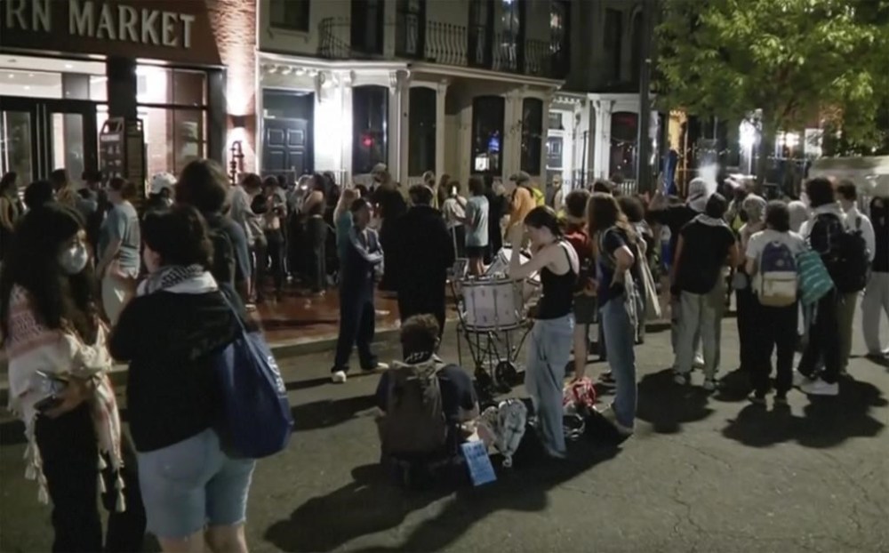 D.C. police said officers moved to disperse demonstrators at George Washington because “there has been a gradual escalation in the volatility of the protest.” They said 33 arrests were made, including for assault on a police officer and unlawful entry. They confirmed they used pepper spray outside the encampment against protesters who were trying to break police lines and enter.