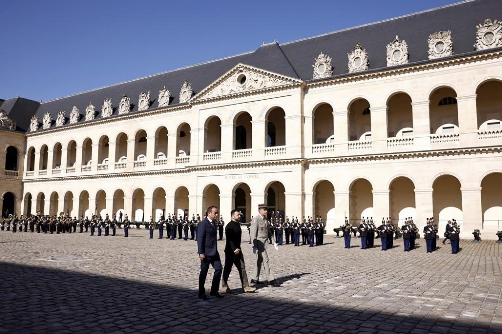 Zelenskyy began a day of meetings in Paris with an official welcome ceremony at the golden-domed Invalides monument, site of Napoleon’s tomb.