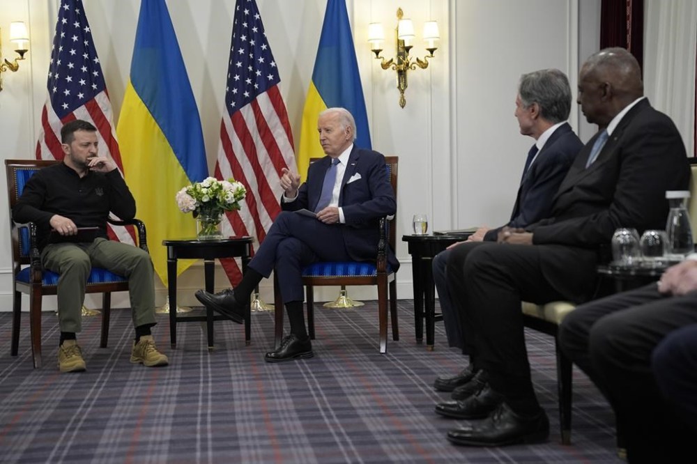 Biden met in Paris with Ukrainian President Volodymyr Zelenskyy, who appealed for bipartisan U.S. support going forward “like it was during World War II.”
