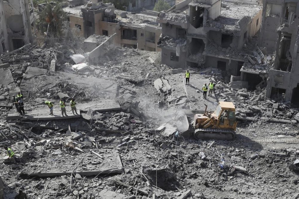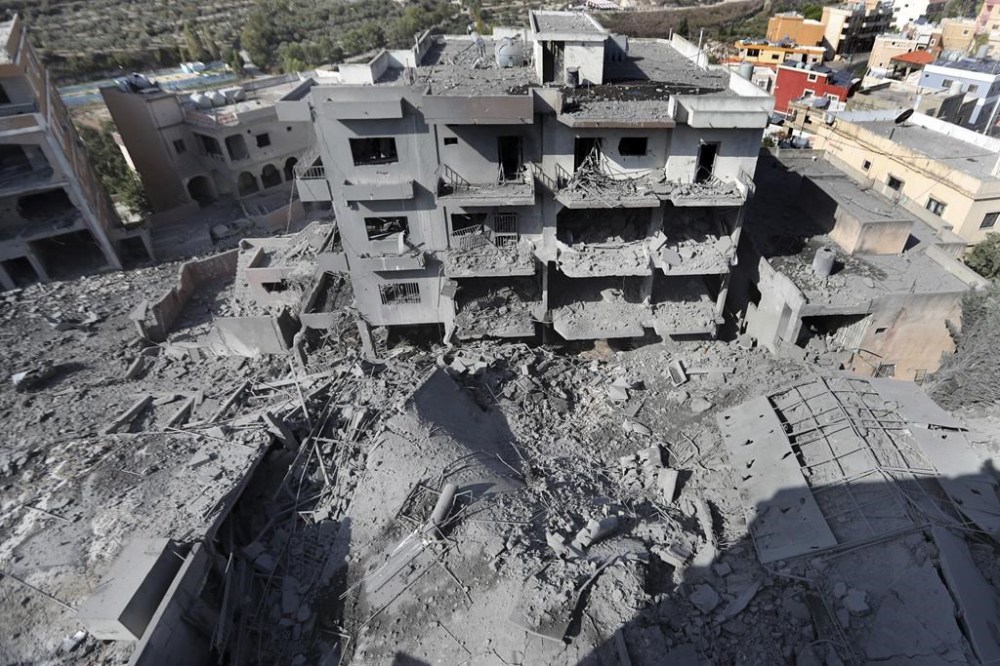 The Israeli military said they were targeting a Hezbollah commander in the strikes late Tuesday on the southern town of Qana, where 15 people were killed. Associated Press photos and video of the scene showed several flattened buildings and others with their top floors collapsed. Rescue workers carried away the remains of dead people and used a bulldozer to remove rubble, as they searched for more victims.