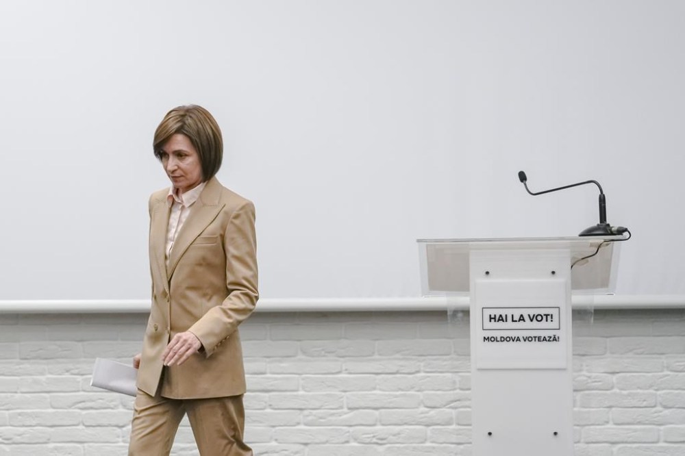 CHISINAU, Moldova (AP) — Moldova’s pro-Western president early Monday looked set to win the first round of a presidential race but accused “criminal groups” of undermining a referendum asking voters to decide whether to secure a path toward European Union membership, which risked being narrowly rejected.
