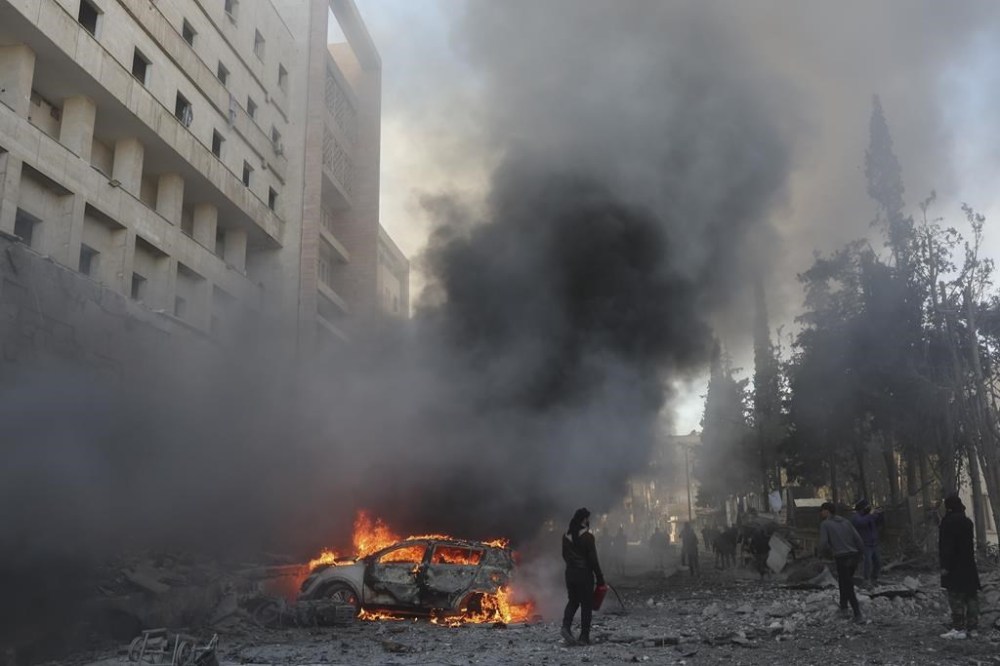 As Syrian and Russian jets continued pounding targets, two airstrikes hit a group of four hospitals and the health directorate building in Idlib city, the Syrian Civil Defense force that operates in opposition-held areas, known as the White Helmets, said.