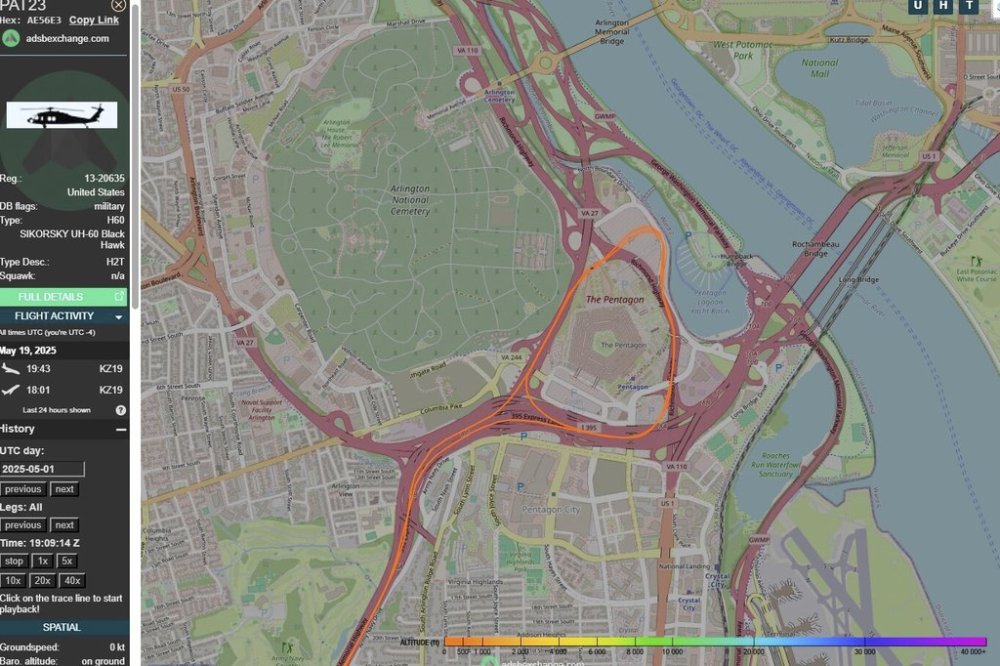 But the ADSB-Out data , which the Army shared with the AP on Friday, shows the crew hewed closely to its approved flight path — directly up the I-395 highway corridor, which is called Route 5, then rounding the Pentagon.
